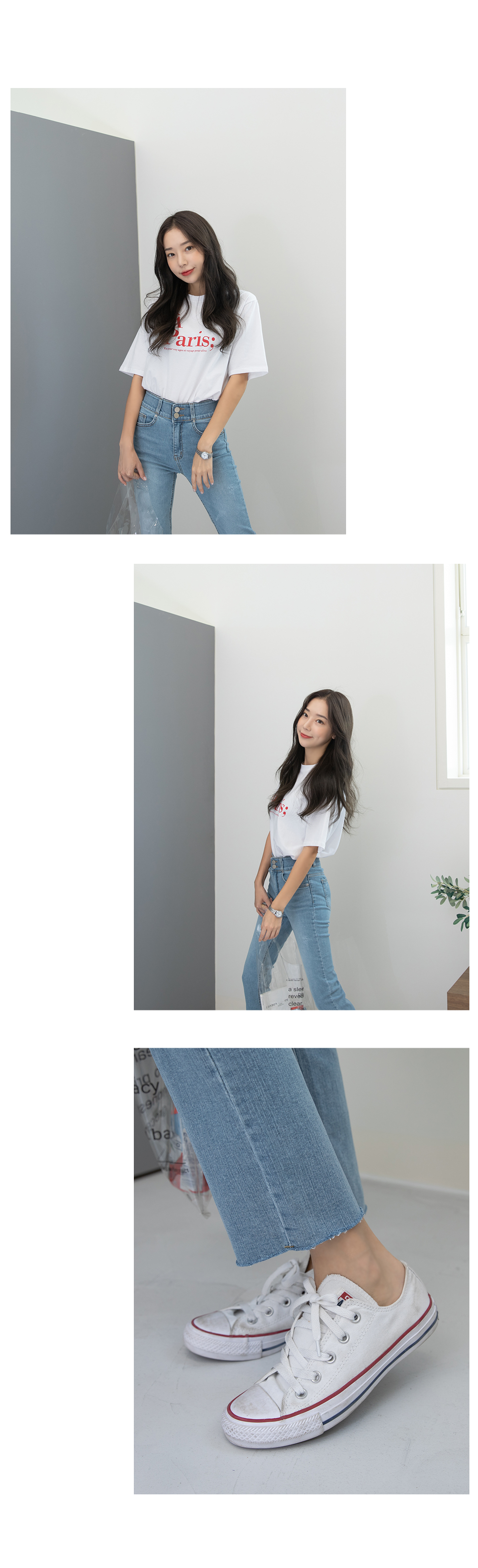 스판이 있어 신축성이 좋고 티셔츠에도 데일리하게 입기좋은 아이랍니당:)