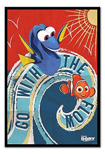 -. Title : Finding Dory Go With The Flow Poster Magnetic Notice Board Black Framed - 96.5 x 66 cms (Approx 38 x 26 inches)