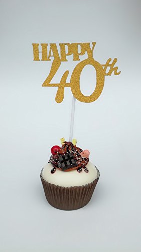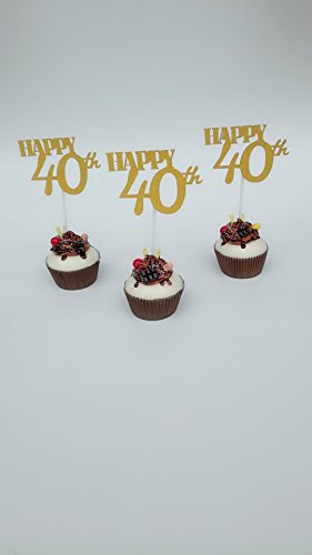 Set of 12 "Happy 40th" Cupcake Topper, Set of 12 Golden Glitter Cupcake Toppers -Cupcake Topper Birthday Decoration (40th Birthday)