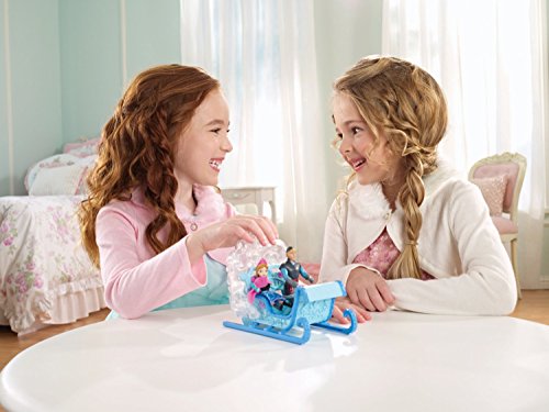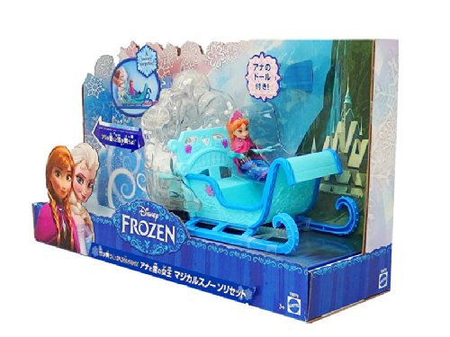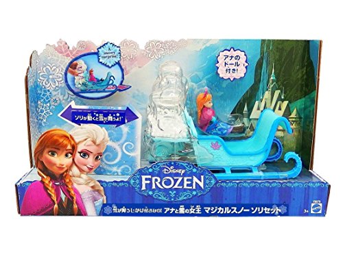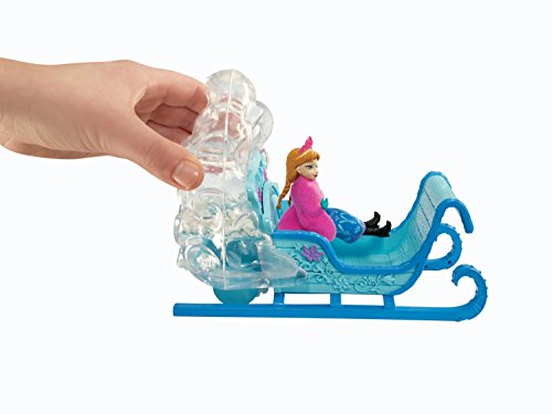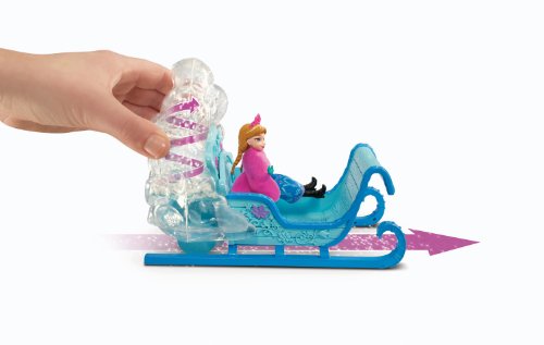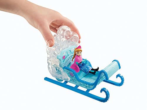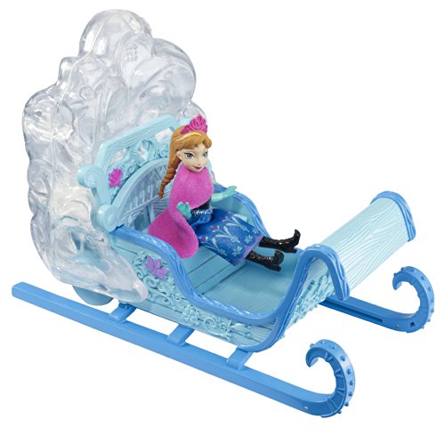 ReleaseDate : 2013-10-01 Studio : Mattel Publisher : Mattel Binding : Toy Product Description Disney Frozen Swirling Snow Sleigh: In the Disney film Frozen, an entire mountain of ice, snow and non-stop adventure stands before Anna of the Kingdom of Arendelle. This sturdy and majestic sled is perfect for completing a treacherous, snowy journey. And with room for two, Anna can ride along her travel companion, the brave and adventurous mountain man, Kristoff (sold separately) - just like in the movie! Together or alone, Anna can speed through the snow and ice, leaving a cloud of snowflakes in her path. As girls push the sleigh along, a flurry of “snow” swirls within the clear compartment at the back - a snowy surprise that will both delight and excite young imaginations! The icy blue-colored sled features realistic elements that include runners, footboards and wintry accents, as well as flower designs that match Anna's signature Norwegian rosemaling-inspired print recognizable from the film. Small doll Anna is dressed for the cold, with a removable skirt and cape to add extra layers. She features molded boots and gloves as well as her pretty braids and gorgeous tiara. Girls will love reenacting the adventures this carefree and courageous character experiences through the mountain in her majestic ride. The sleigh comes with an Anna small doll. 0