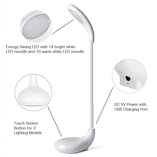 - Touch-sensitive control panel with 3 color modes(white light,warm white light,natural light), suit for your reading, studying and working.
