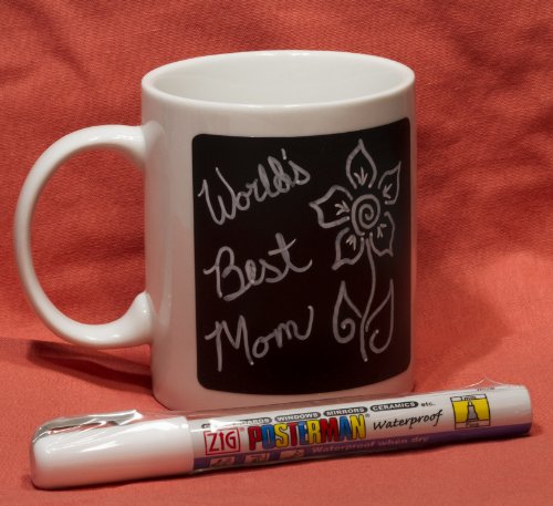 Cohas Chalkboard Labels for 11 Ounce or Large Coffee Mugs includes Liquid Chalk Marker and 12 Labels, Fine Tip, White Marker