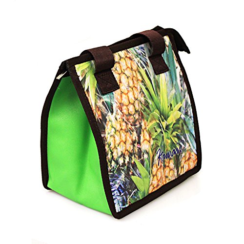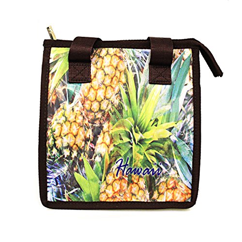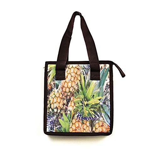 Hawaiian Print Thermal Insulated Zipper Lunch Bag Golden Pineapples All Over Small