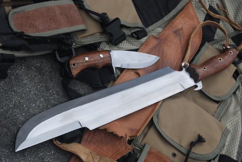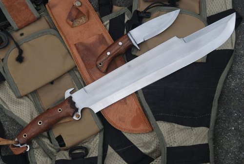• 14" Blade with appximately 6" Rosewood handle, Overall length 20", Thickness about 3/8" at Spine.