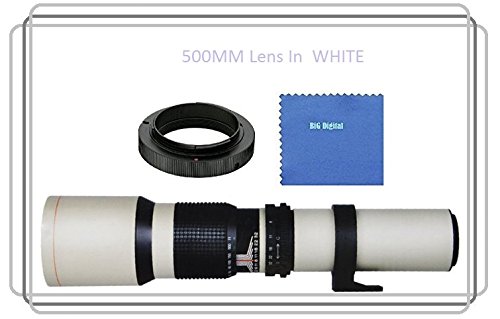 -. Feature : The 500mm f/8.0 Telephoto Lens from Vivitar is an ultra-telephoto lens that brings distant objects close and is ideal for wildlife photography. It is also used for landscapes, cityscapes, architecture, sports and celestial photography and multiple general photography applications. / It's recommended to use with a tripod, The Built-in tripod mount provides stability when mounted tripod or monopod / The lens multi-coating process provides even light transmission and minimizes flaring to produce sharp, high contrast images. / The white lens barrel helps reduce heat buildup. / Includes: Front Lens Cap / Rear Lens Cap / Padded Pouch with Shoulder Strap / T-Mount Ring.