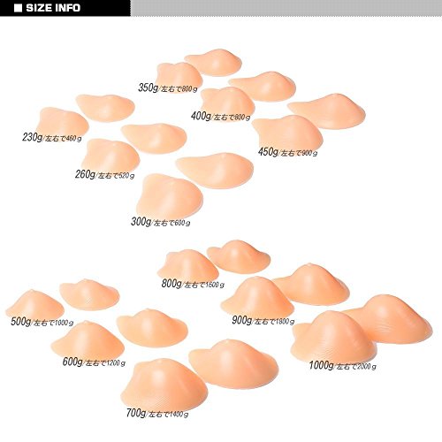 【商品サイズ】右側230g×1 縦16.5㎝×横約13㎝×高さ約3.5㎝(底辺から乳首の先まで)おおよそA-カップ程度の大きさです。