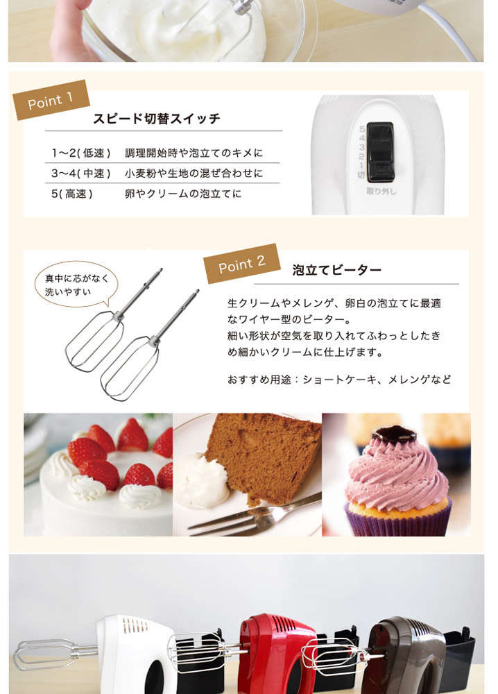 ●低速がゆっくりなのでふんわりした生クリームができます