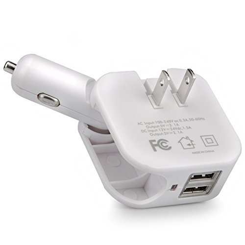Efficient 2 in 1 charger can be connected to both your car and a wall AC outlet.