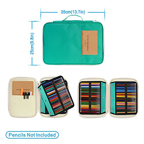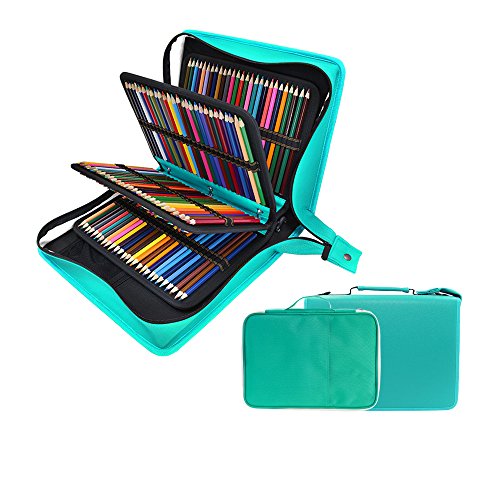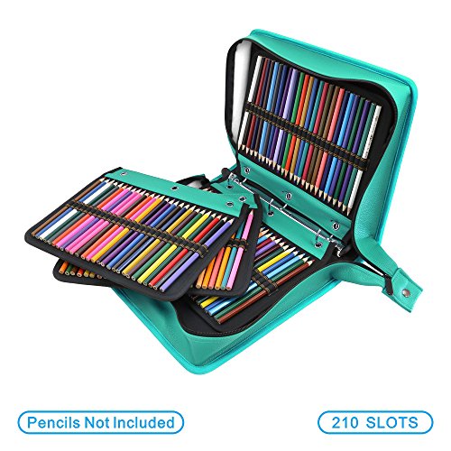 - EXTRA LARGE CAPACITY - Total 216 elastic slots. You must always been very protective of your pencil set. This case will holds all of your colored pencils and books. Nice to have everything in one easy to access and view place. The elastic slots hold your pencils/pens very snug so there are no worries of them falling out and getting lost or broken.