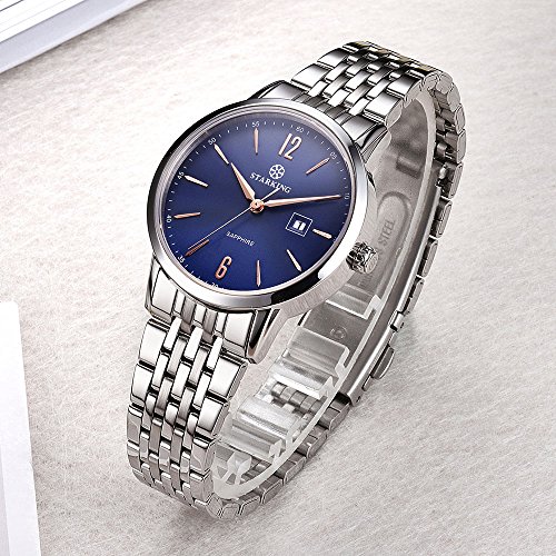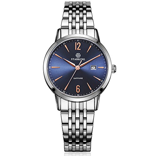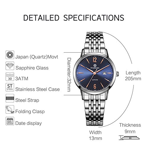 STARKING Women Elegant Japanese Quartz Sapphire BL0976 Silver Stainless Steel Band Numbers with Date Classic Analog Watch