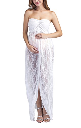 Features: Strapless, Split Front maternity dress, Full lace cover (Pink with Chiffon, Blue and White (Lace Chiffon) covered with lace & Chiffon, other variation with full lace covered, Bottom See Through), Floor Length, for Pregnant Gift