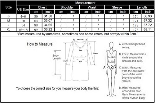 Size L: Bust: 88cm/34.6''---Length: 172cm/67.7''