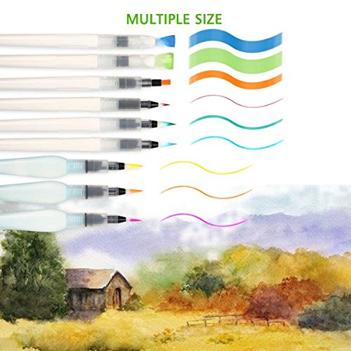 - ★VARIETY OF SIZED BRUSHES★ Set of 3 + 6 pieces water brush pens: 3 flat tip brush pens, 3 point tip brush pens and 3 big point tip brush pens, meet all your various needs, fit for who loves art from child to professional artists.