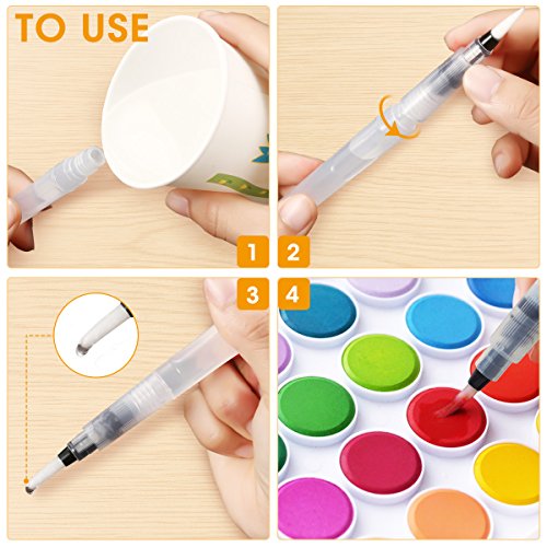 - ★EASY TO USE★ Just unscrew the water brush pens' barrel to add water or ink. Translucent barrel allows you to monitor water supply easily. Once you tighten the brushes, there will be no leaks. When finish painting, just dismantle it, clean with water and dry with towel or put in a ventilated place. Paint without making any mess.