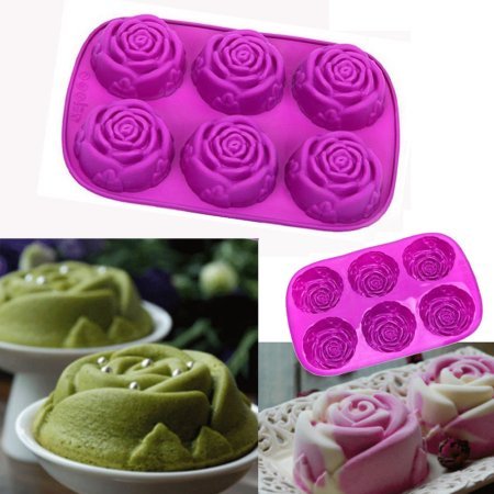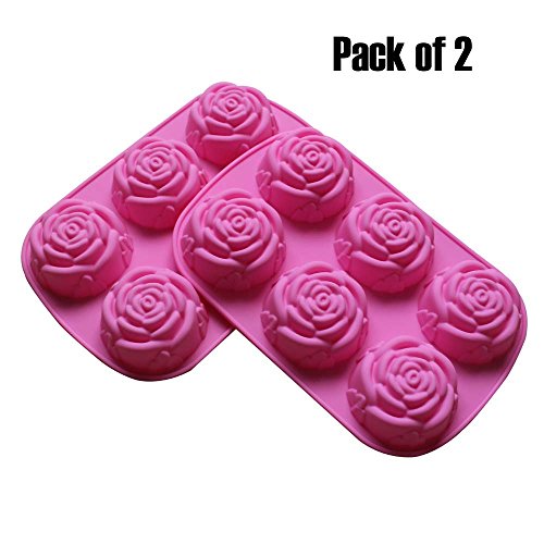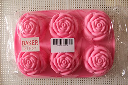 BAKER DEPOT Silicone Mold for Handmade Soap, Cake, Jelly, Pudding, Chocolate, 6 Cavity Rose Design, Set of 2
