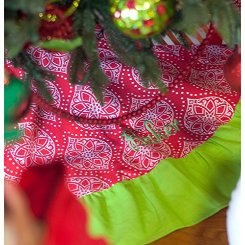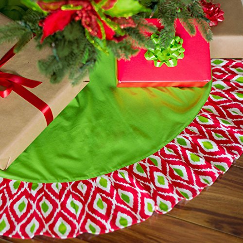 48 Inch Decorative Pattern Christmas Tree Skirt (Ikat Red and Green)