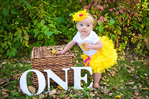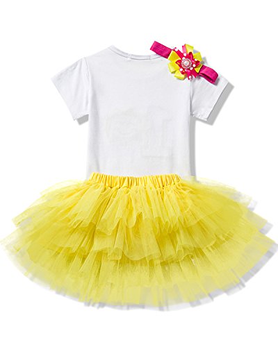 Attractive printed "1" and including the Yellow Smile pattern in the middle of the shirt, skirt with breathable multi-layered tulle tutu design perfectly match soft hemline. The rose headband are decorated with flower, make your girl more attractive and cute. Suitable for daily wear and special occasion like wedding party, holiday party, ceremony, baptism, birthday party, pageant etc.
