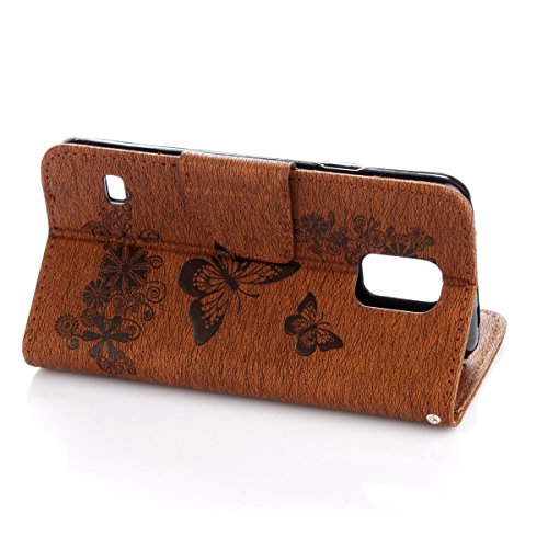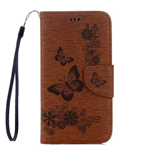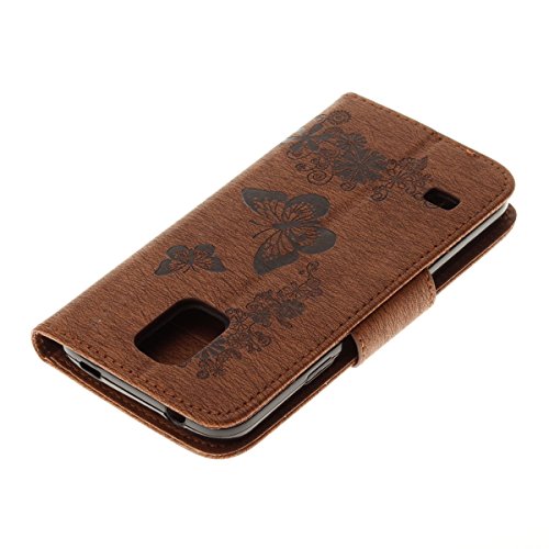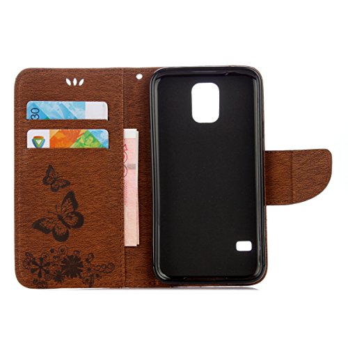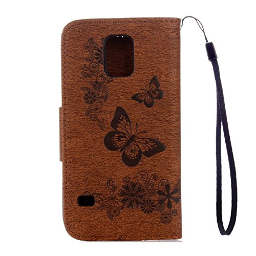 IKASEFU Retro Leather Flower Butterfly Wallet Case Cover Starp Flip Case with Strap and Card Holder for Samsung Galaxy S5 Mini-Brown,Butterfly