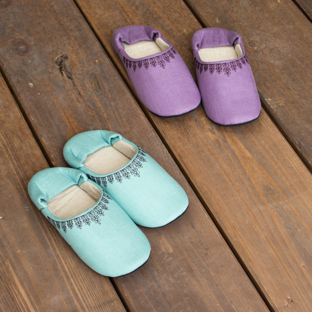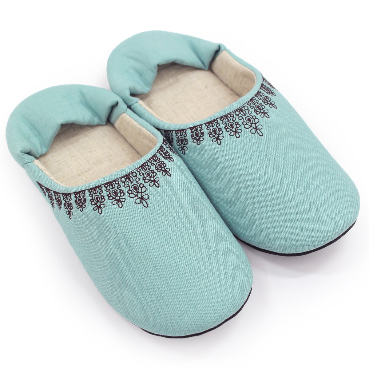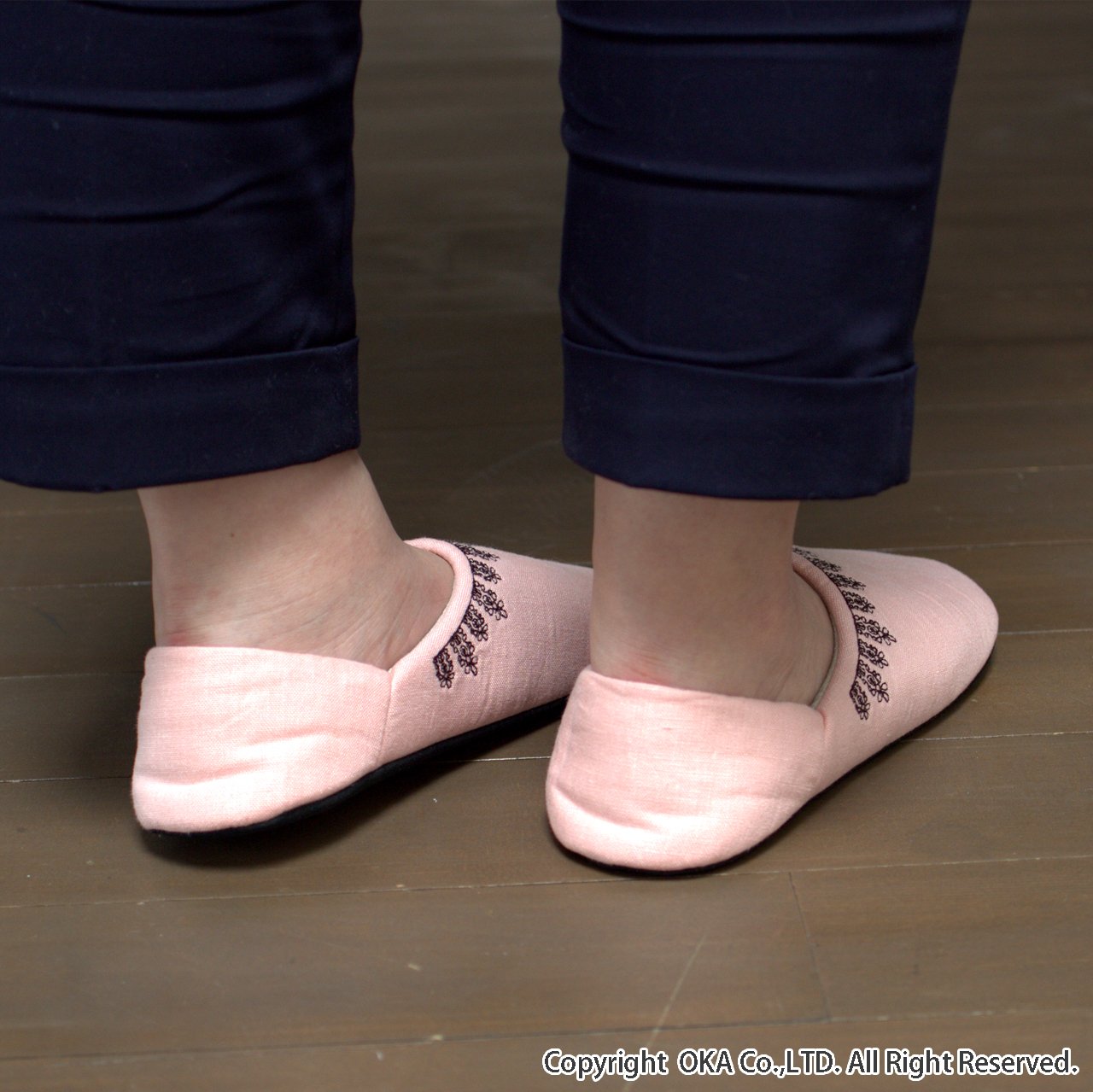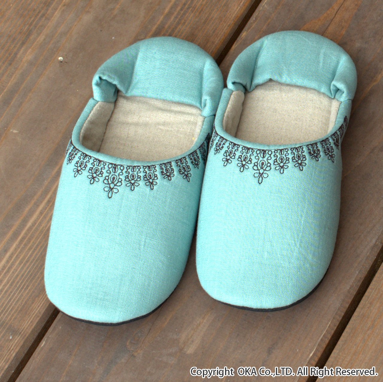 Room Shoes M size green of black lace embroidery washable made in Japan