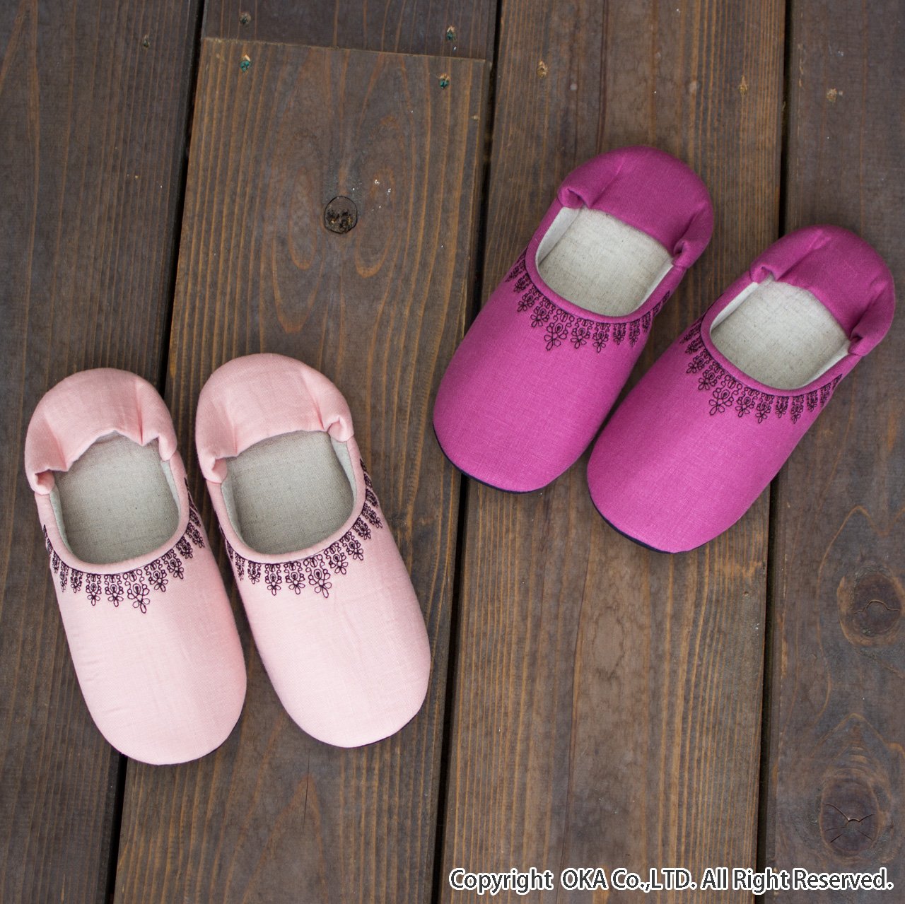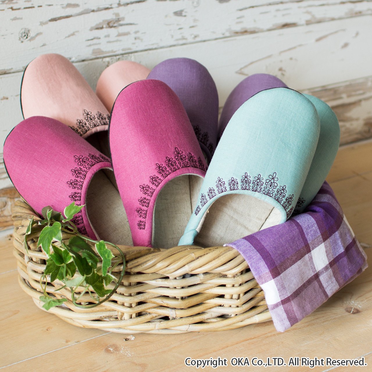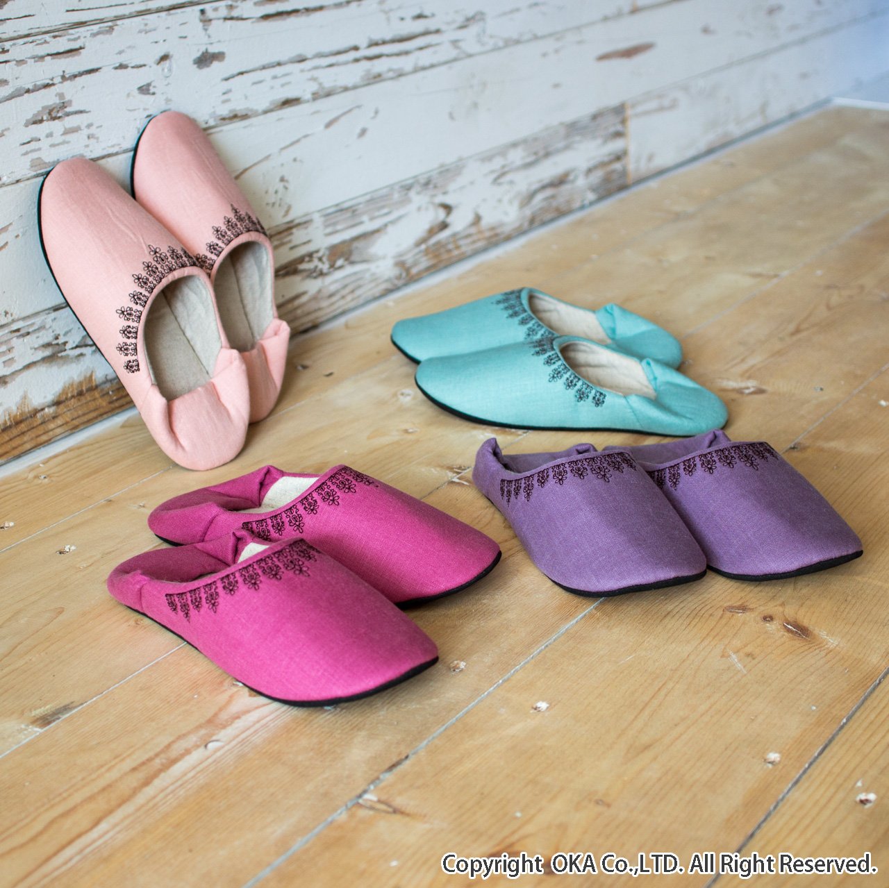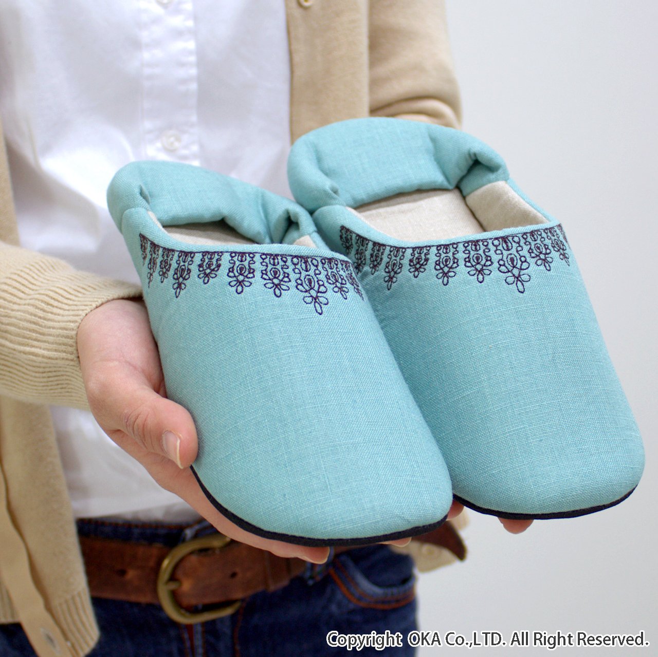 Room Shoes M size green of black lace embroidery washable made in Japan