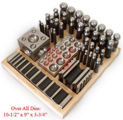 -. Feature : 41 PCS Dapping Punch Block Set / All Solid Stainless Steel / **Please read below for further production description** / Over All Dimension in Wooden Storage Stand: 10-1/2" x 9" x 3-3/4" / Quantity: 1