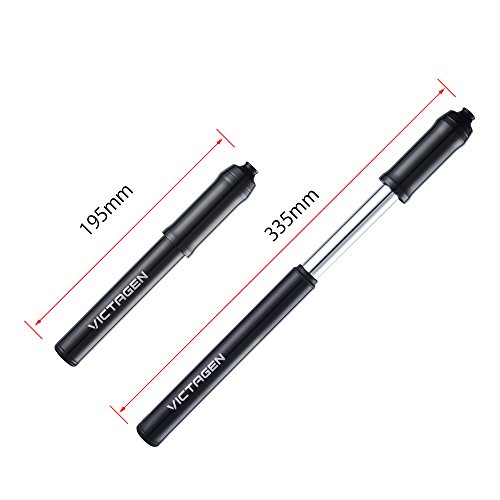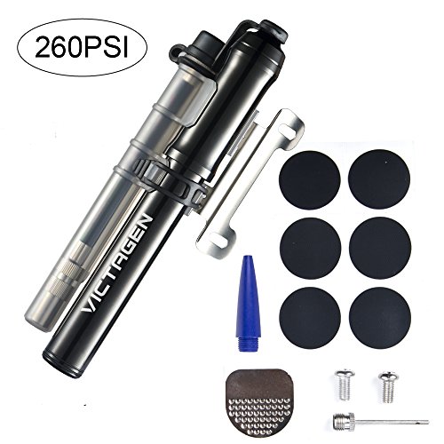 -. Title : Victagen Lightweight, Durable 260 PSI High Pressure Aluminum Mini Bike Air Pump, Schrader & Presta Valve Compatible Including Bonus Accessories and Bike Frame Mount