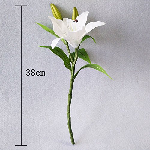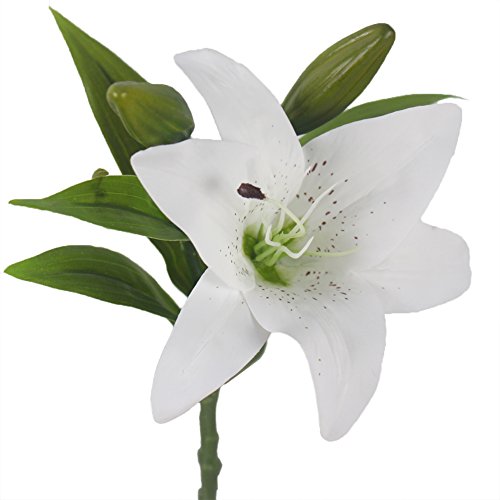 JAROWN 6 pcs Tiger Lily Artificial Real Touch Flowers Wedding Bouquets for Home Office Decoration (White)