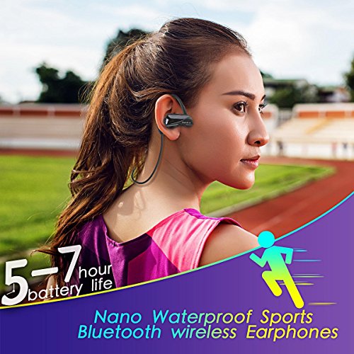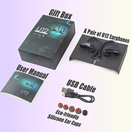 -. Feature : NANO IPX-7 WATERPROOF DESIGN WITH 100% SWEAT PROOF, RAINPROOF, but are not made to be used underwater. Wireless Earbuds Sport Running Audifonos is GREAT for Running, Jogging, Hiking, Biking, Gym etc. Ergonomically designed earphones fit the shape of your ears while soft silicone ear hooks and interchangeable ear tips are made of premium soft and light materials. You will feel nothing on ears and back neck while doing sports. / SUPERB SOUND QUALITY HEADSET and Bluetooth v4.1 mode +EDR regulation for stereo sound and superb bass sound. Clear high & low volume. Best wireless earbuds sound. You can enjoy music with pure natural and more balanced sound by hands free and no more tangled wires. / Headphone possesses 1 FOR 2 MULTI-POINT FUNCTION which allows connecting with two different audio devices. You do not need to prepare two individual Bluetooth earphones if you want to operate two devices at the same time, ie. one syncs with your iPhone another links to your Bluetooth audio speaker. / STRONG WIRELESS SIGNALS &DURABLE BATTERY for non-stop music playing up to 5-7 hours, with low battery alert function. Wireless earbuds with mic let you enjoy a long period time on talking, listening music during an international flight, or on the road driving. Wireless Earbuds Sport Running Audifonos suitable for ease connection to audio devices within 33 ft free space as U12 is equipped with the top world class CSR chip to ensure the stability while no other interference. / UNIVERSAL COMPATIBLE with all audio devices iPhone 5/6/7, Samsung galaxy s5/s6/s7 and 100% guarantee with 1 year limited warranty. It is universal compatible with smartphones, mobile phones, tablets and other bluetooth enabled devices within 33 fts free space. You are more than welcome to request for a complete FAQ guidance of Bluetooth Headphones in any case can't connect with your cell phones or other devices.