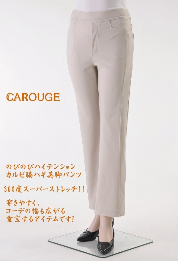 【CAROUGE】ハイテンションカルゼ素材脇ハギ美脚パンツ