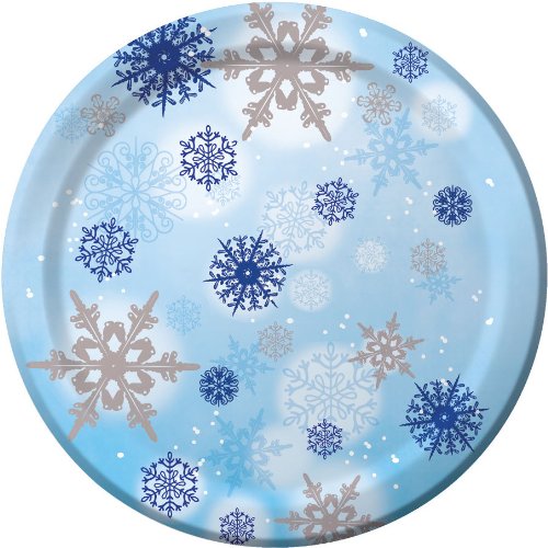 Studio : Creative Converting Publisher : Creative Converting Binding : Kitchen Product Description A flurry of fun awaits your holiday celebration when the tables are dressed with the Shimmering Flakes banquet plates. Perfectly suited for extravagant Christmas buffets and holiday dinners, these heavy duty plates measure a large 9.75-Inch diameter and work terrific for buffet lines, big meals and party snacks. Package contains 8 heavyweight plates. Each premium quality round plate features an icy sky blue background floating with delicate frosty snowflakes in varying shades of blue and silver. The well-made sturdy plates offer superior durability that is leak proof and cut resistant with unrivaled good looks for a lasting impression. Celebrate any holiday celebration. Have a December birthday? Use for a classroom party, an annual office holiday luncheon, festive family dinner or just a wintry bar accessory for cold evenings at home. Guest place settings will sparkle with coordinating designed disposable napkins, guest towels and personal pocket tissue packages. What an easy and elegant way to make holiday dinner clean up a breeze since during this winter season, you have more important things to do than the dishes. 0