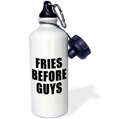 3dRose wb_222782_1 "Fries Before Guys Black" Sports Water Bottle, 21 oz, White
