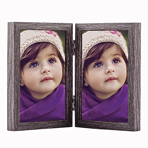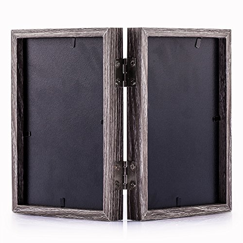 Wood Hinged Double Picture Frame, Double 4 By 6 inch (Grey)