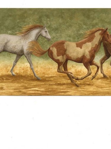 -. Title : Wallpaper Border Running Wild Horses on Tan and Green