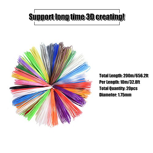 KKmoon 200m/656.2ft 3D Printing Pen ABS Filament Refill 1.75mm Children Christmas Gift (20 Assorted Colors Sent at Random)