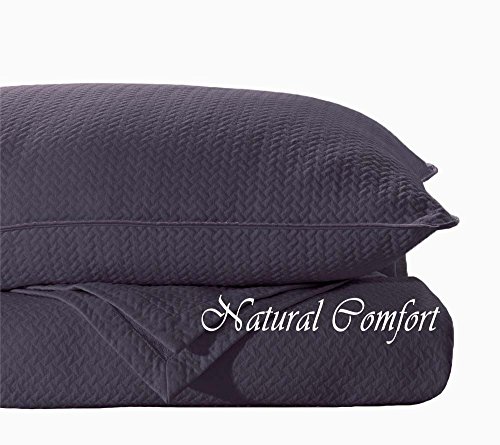 Natural Comfort Matelassé Blanket Coverlet, King, Herringbone/Purple Gray