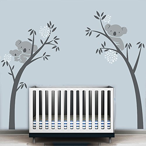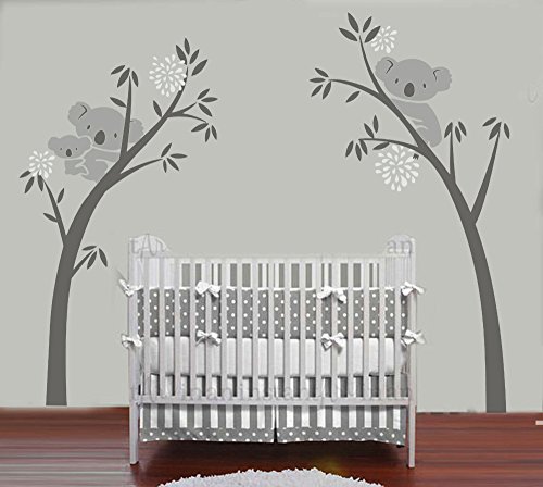 LUCKKYY Three Koalas tree Branches Tree Wall Decal Tree Wall Sticker Baby Nursery Decor Kids Room (dark grey+white)