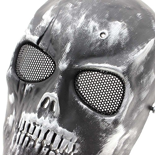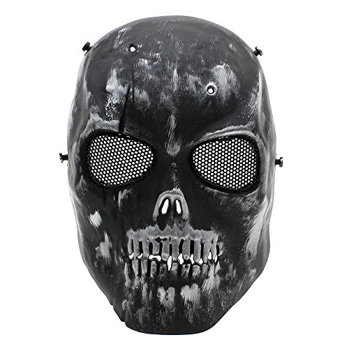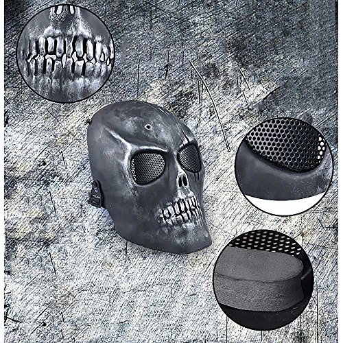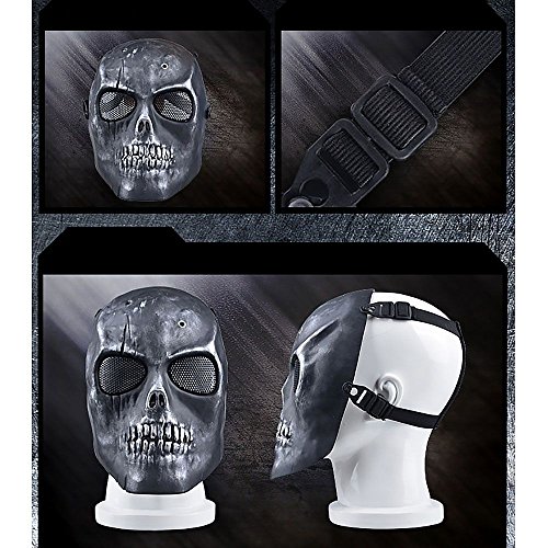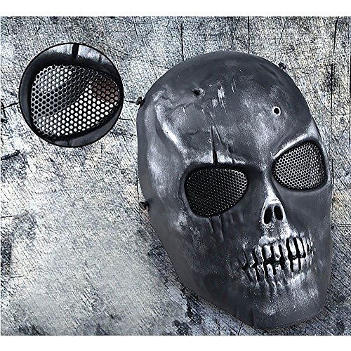 -. Binding : Misc. -. Brand : MM -. EAN : 0091971026779 -. Feature : This paintball face mask is designed of skeletons, zombies and beast / High wearing comfort, breathable and provides ultimate protection / Does not affect the sense of sight, you can also wear glasses or headphones and ensure aimed shot / Suitable for face protection during outdoor CS and field paintball, costume for cosplay and party movies / Adjustable straps design is easy to wear -. Label : MM -. Manufacturer : MM -. MPN : SF00A3760 -. PackageQuantity : 1 -. PartNumber : SF00A3760 -. ProductGroup : Sports -. ProductTypeName : SPORTING_GOODS -. Publisher : MM -. Studio : MM -. Title : MMRM Airsoft Paintball CS War Game Skull Full Face Protect Mask Master Skeleton Cosplay Costume -. UPC : 091971026779