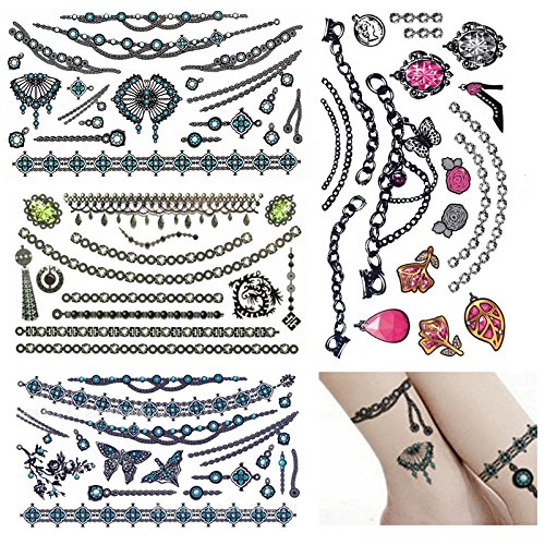 65+ A&E Design Jewelry Pattern Women Party Waterproof Temporary Tattoo - 4 Sheets - Halloween Party Fashion Temporary Tattoo