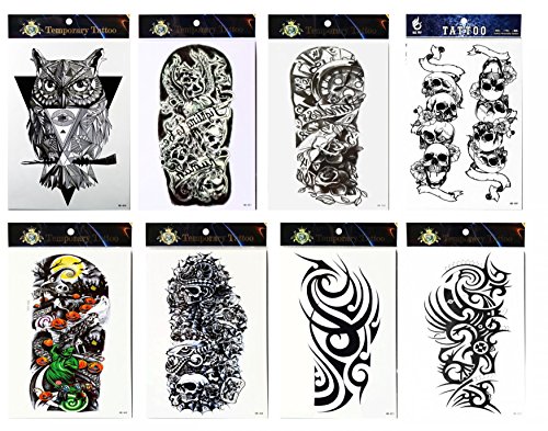 GGSELL GGSELL tattoo 8pcs arm temporary tattoos in one packages,including owl,skull,totem,arm tattoo for men and women
