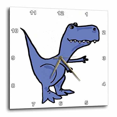 Funny Blue Trex Dinosaur Cartoon Wall Clock is a wonderful complement to any room in your home or office. Made of durable high grade aluminum. This frameless clock has a high gloss mirror like, UV coated, scratch resistant finish and is suitable for a moist environment. Sizes available range from 10" x 10" to 15" x 15". Requires one AA battery; not included. Battery box is not covered.Feature