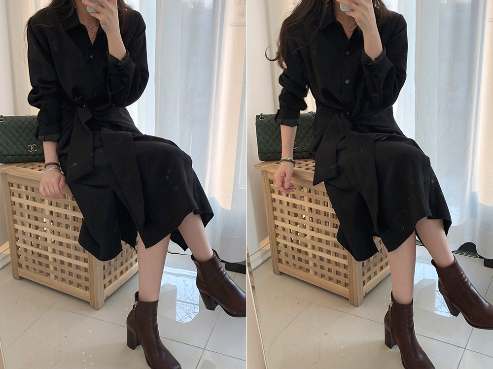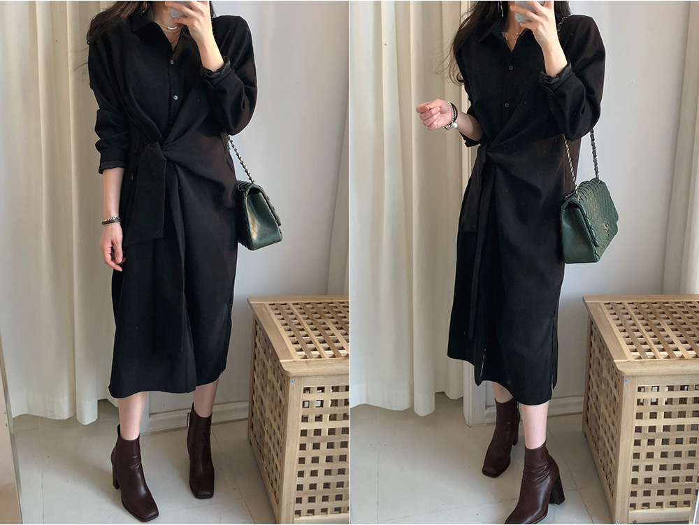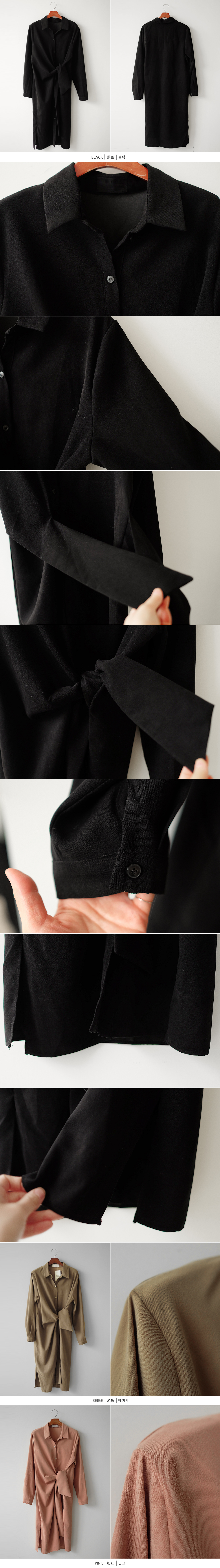 스칼렛 기모 매듭 롱 셔츠 원피스