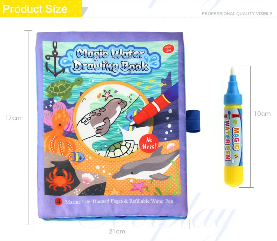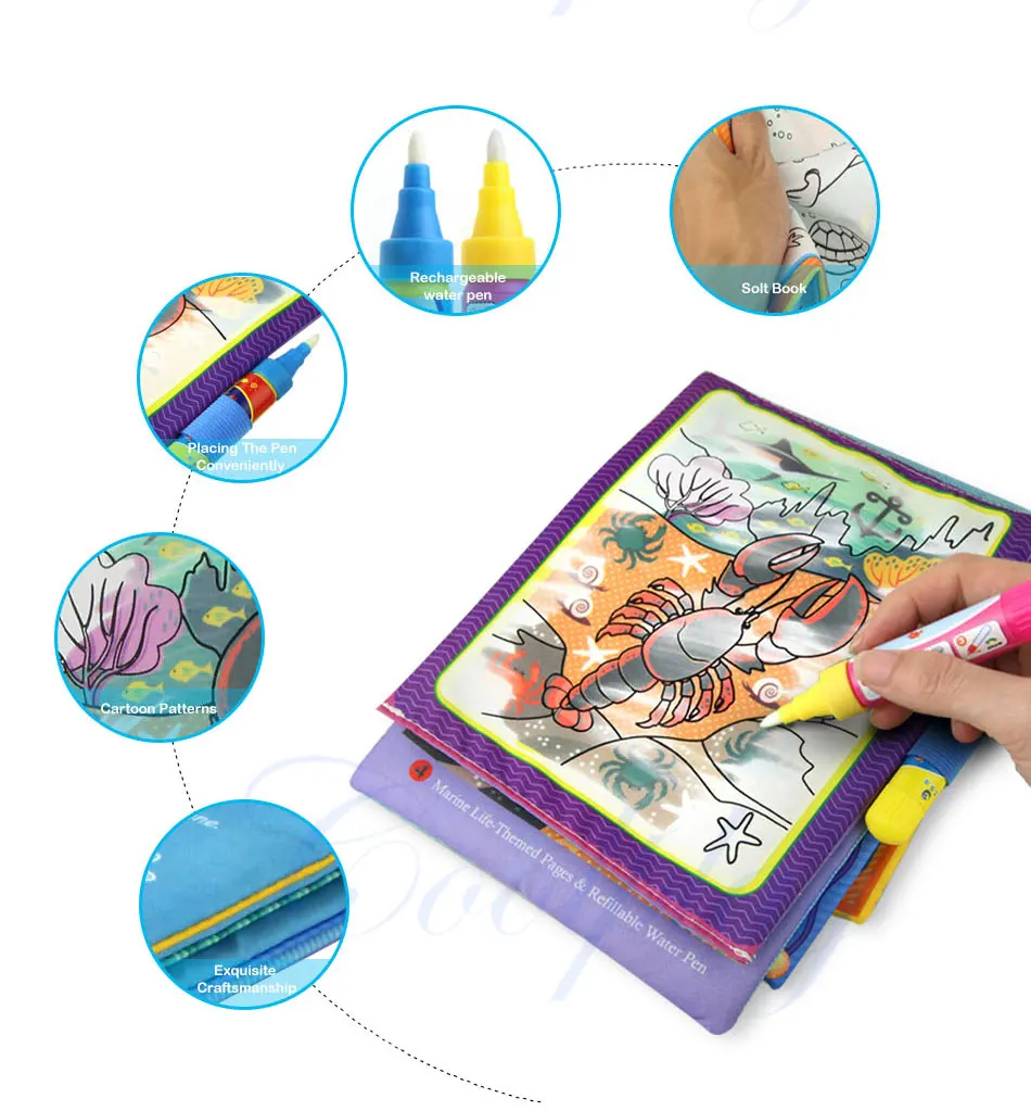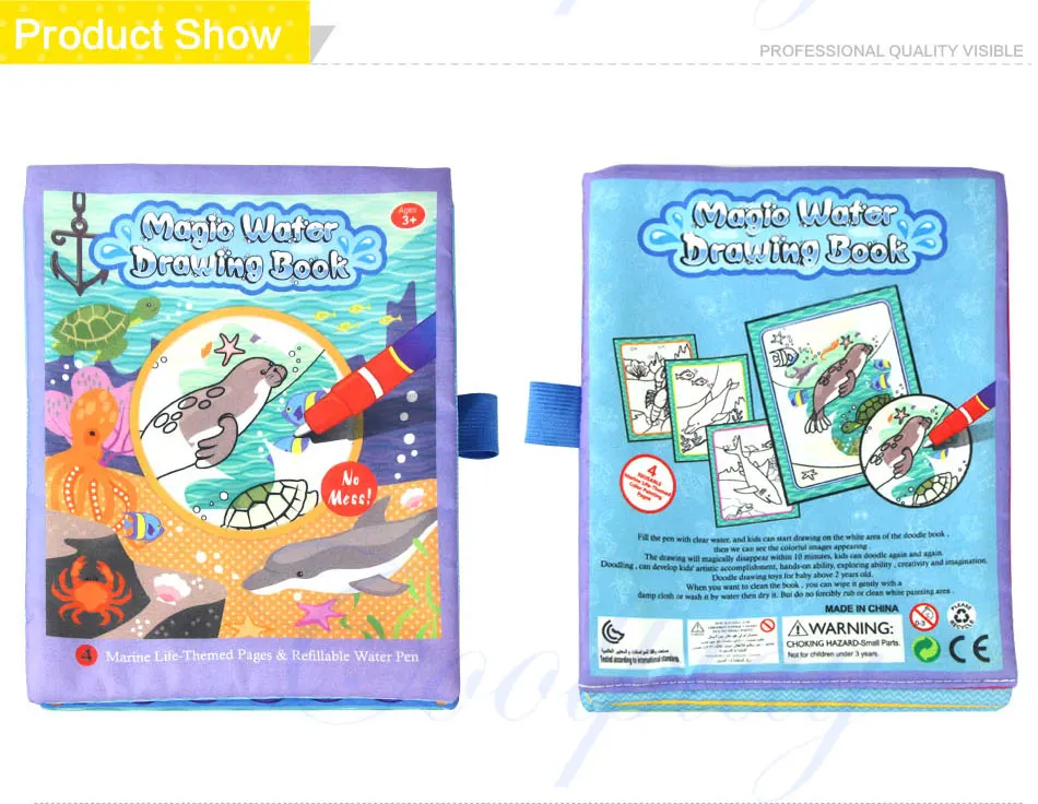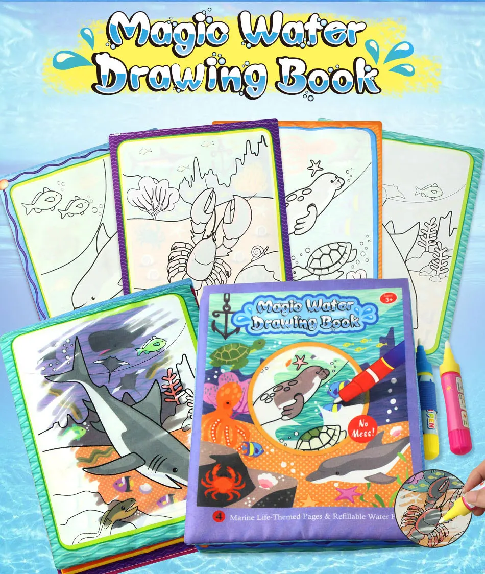 - Kids will learn more knowledges about colors and marine lifes by using the water drawing book.