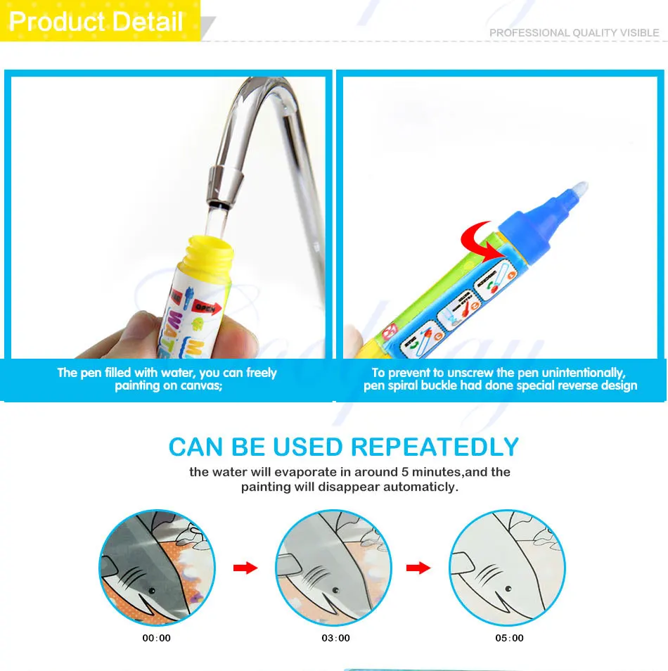 - Just fill the pen with water,no ink,no chemical,safe for kids playing.