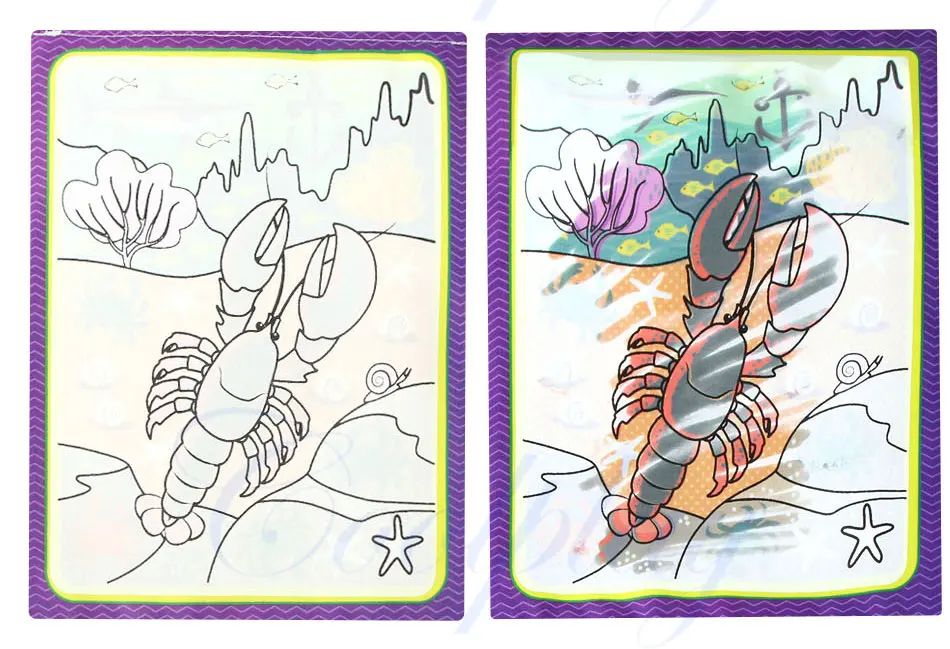 - Four pages to draw,multicolor and all kinds of animals(such as crab,shrimp,shark...)