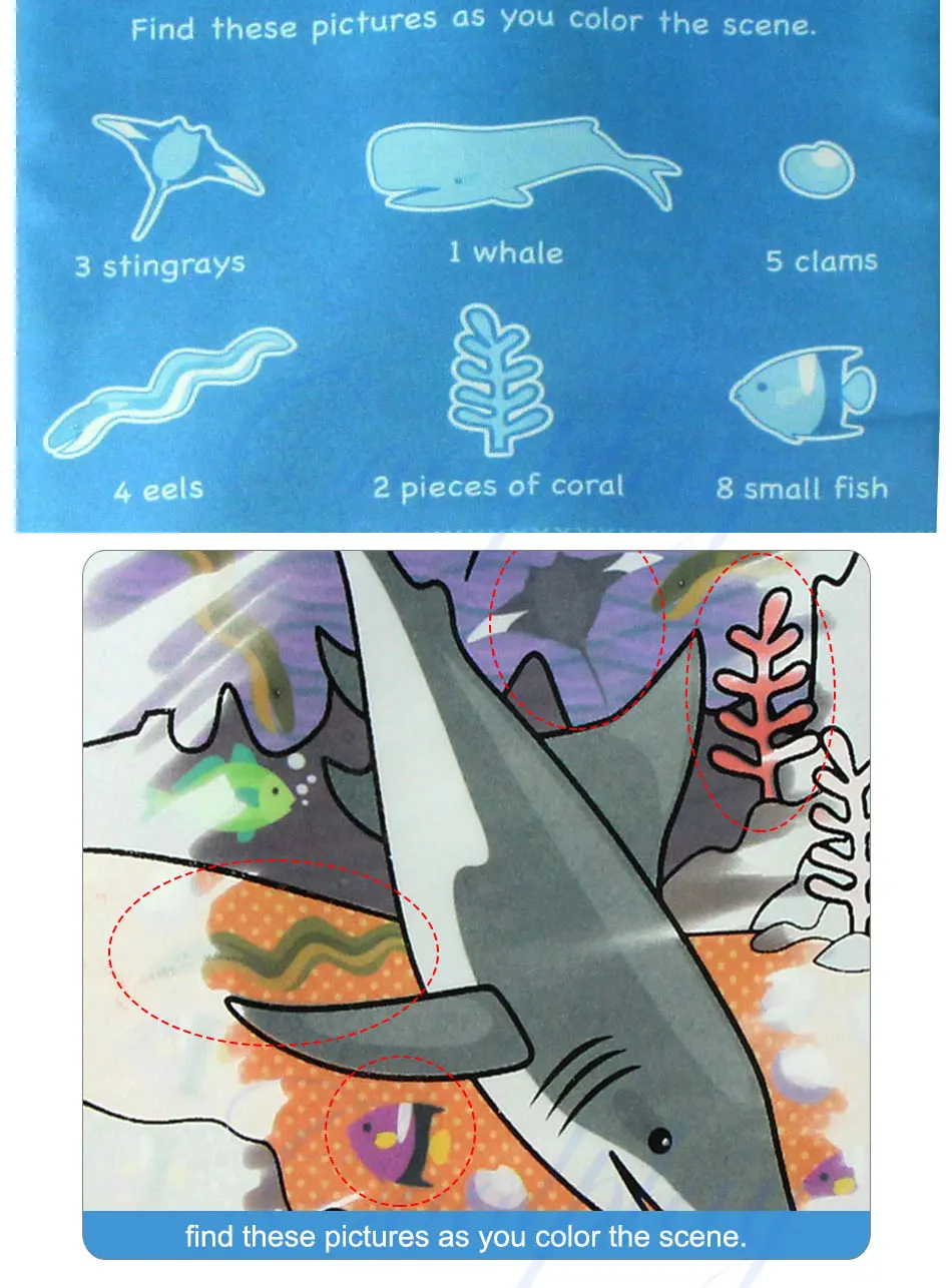 - The special feature is that on some of the pages it has many marine lifeu0026nbsp;images that are hidden until you color it. Entertaining and educational toys,kids can learn more knowledge and recognized the animals by finding the hidden images,so funny.