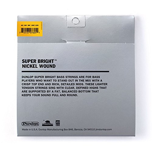 Dunlop Super Bright Bass Strings are designed for bass players who want to stand out in the mix with a crisp top end without sacrificing any fundamental. Carefully designed and tested by our team of bass players, Super Bright Bass Strings sing with clear, defined highs that are supported by a fat, balanced bottom that keeps your sound full and round. Lighter tension provides a superior response to playing nuances, and the silky smooth feel of each string provides superior playing comfort. With extra-long life and exceptional string to string balance, Dunlop Super Bright Bass Strings allow the natural voice of your bass to come through.