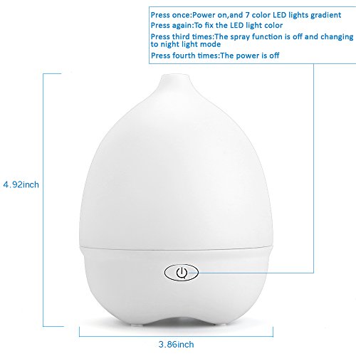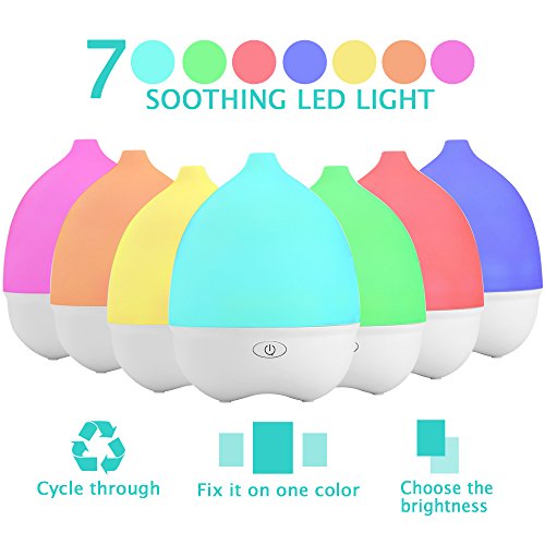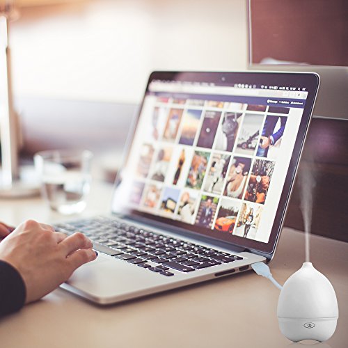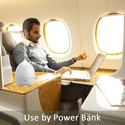 Simple Essential Oil Diffuser with 7 Color Night Light, FUNUSE 70ml 5V USB MiNi Humidifier- Connect Power Bank to Use (White)