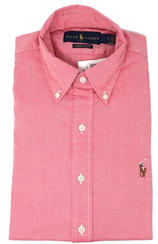 Ralph Lauren Men Oxford Button Down Logo Shirt (L, Cardinal pink)