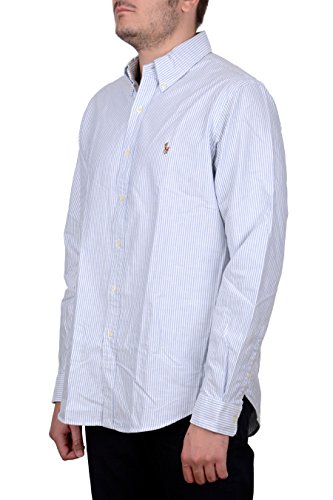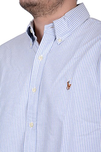 Ralph Lauren Men Classic Fit Oxford Striped Shirt (Large, Blue/White)