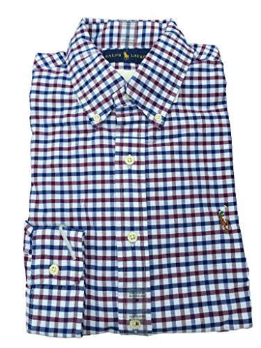 Ralph Lauren Men's Checkered Oxford Shirt (Small, Wine/Royal)